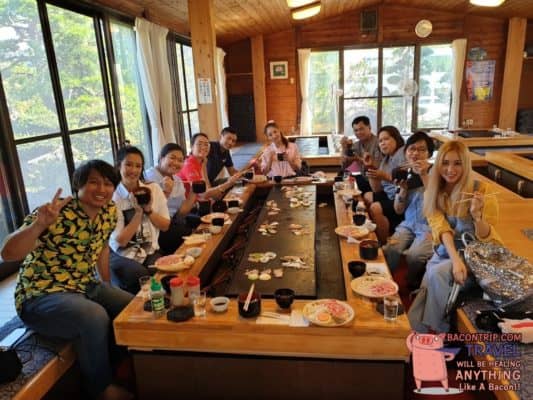 กรุ๊ปนี้พิเศษตรงที่ วันที่เราไปตรงกับวันที่พายุจ่ามีเข้าพอดี วันนั้นเราไปนอนกันที่บ้านพักริมทะเลสาบคาวากุจิโกะ พายุจะเข้าประมาณเที่ยงคืนของญี่ปุ่น พวกเราเลยพาลูกค้าไป ซูเปอร์มาเก็ต ไปขนอาหาร ขนเนื้อ ขนหมู ขนผัก มาทำอาหารกินกันเองที่บ้านพักของเรา เพราะถ้าเรากินข้าวเย็นอาจติดพายุแล้วกลับที่พักไม่ได้ เรียกว่าพายุมาก็ไม่สามารถพรากมื้อเย็นไปจากเราได้ อิอิ